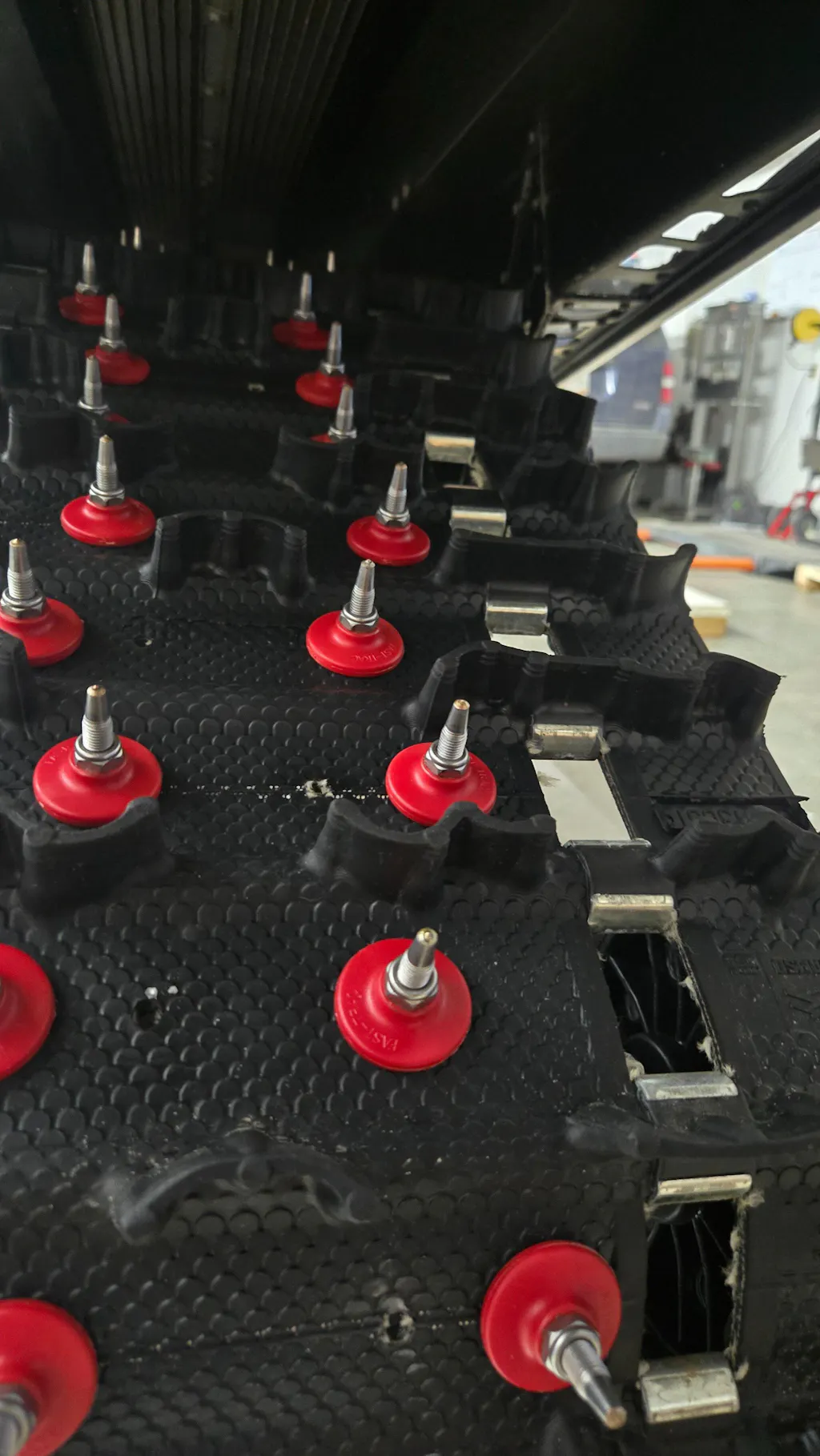 - Polymer backer designed to be firm on ice and hard pack but absorb hard hits from rocks, stumps, etc to prevent track damage.